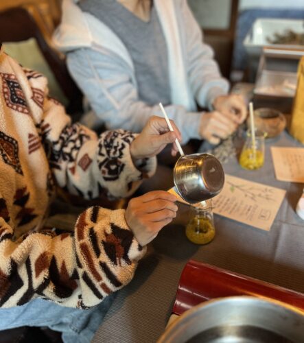 リクエストをいただき、藍の葉入り蜜蝋バームワークショップをしました!