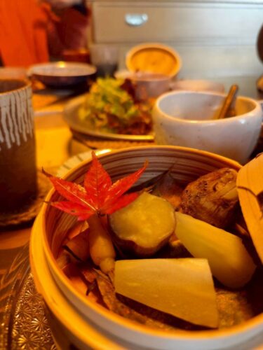 少し寒くなってきたので、囲炉裏の部屋でランチタイム